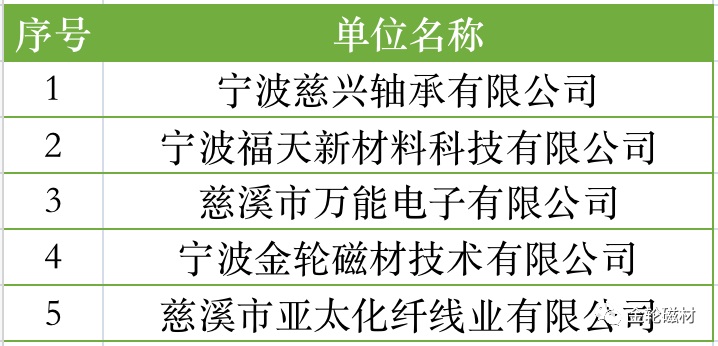 اخیراً اداره اقتصاد و فناوری اطلاعات شهرداری نینگبو لیست کارخانه های سبز پنج ستاره و چهار ستاره را در نینگبو (نخستین محل) اعلام کرد و مواد مغناطیسی Jinlun با موفقیت به عنوان یک کارخانه سبز در نینگبو انتخاب شد. در مجموع 9 شرکت در شهر Cixi انتخاب شدند. از این میان 4 بنگاه به عنوان کارخانه سبز 5 ستاره و 5 بنگاه به عنوان کارخانه سبز 4 ستاره انتخاب شدند.