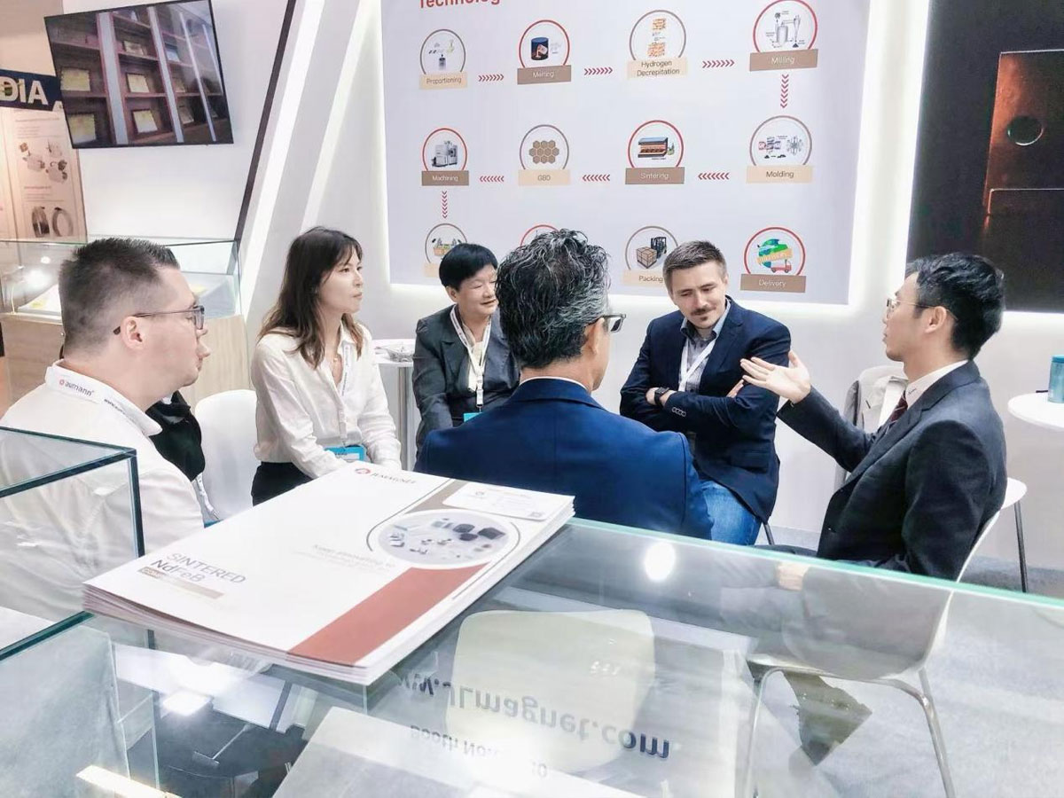 در CWIEME برلین که از 23 تا 25 می 2023 برگزار شد، Ningbo Golden Wheel Magnetic Materials Technology Co., Ltd. با استفاده از مواد مغناطیسی با کارایی بالا و راه حل های سیستمی جدید توسعه یافته خود با موضوع "رهبری مغناطیسی برای آینده - راندن جهان، قدرت مغناطیسی جهانی" را به نمایش گذاشت که قدرت مغناطیسی جهانی را به مشتریان جهانی نشان می دهد. درگیر شدن در گفتگو با جهان
